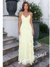 Sexy Chiffon Spaghetti Straps Sleeveless Ruffled A-Line Maxi Prom Dress/Graduation Dresses With Split, PD01179